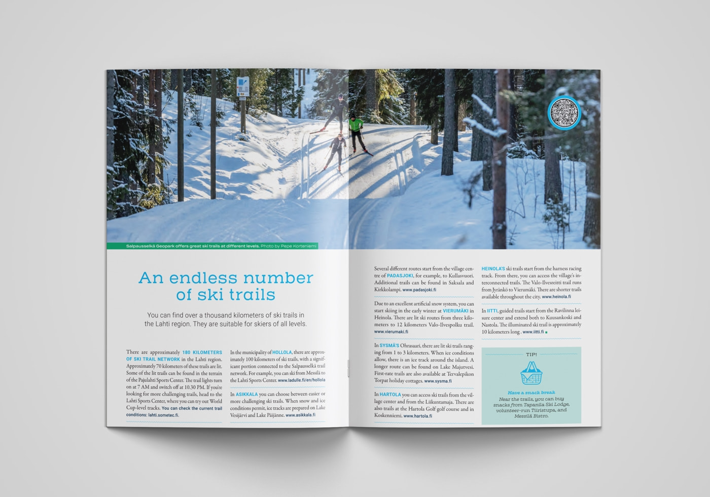This project showcases the creation of a winter tourism magazine dedicated to the Lahti region of Finland. Designed as a comprehensive guide for international visitors, it presents the must-see activities of the cold season: winter swimming, Nordic experiences, snowy landscapes, wellness, and local traditions.
